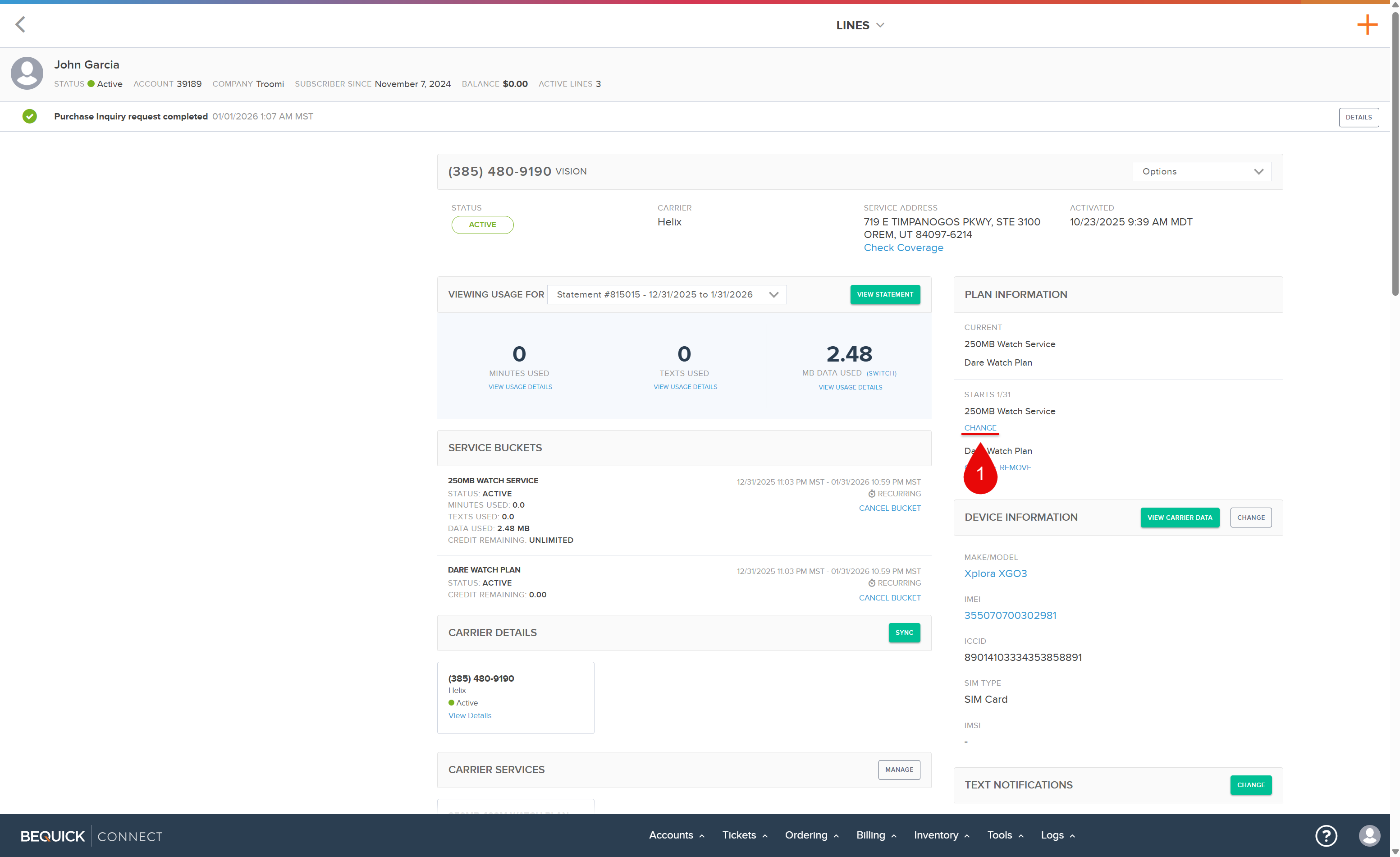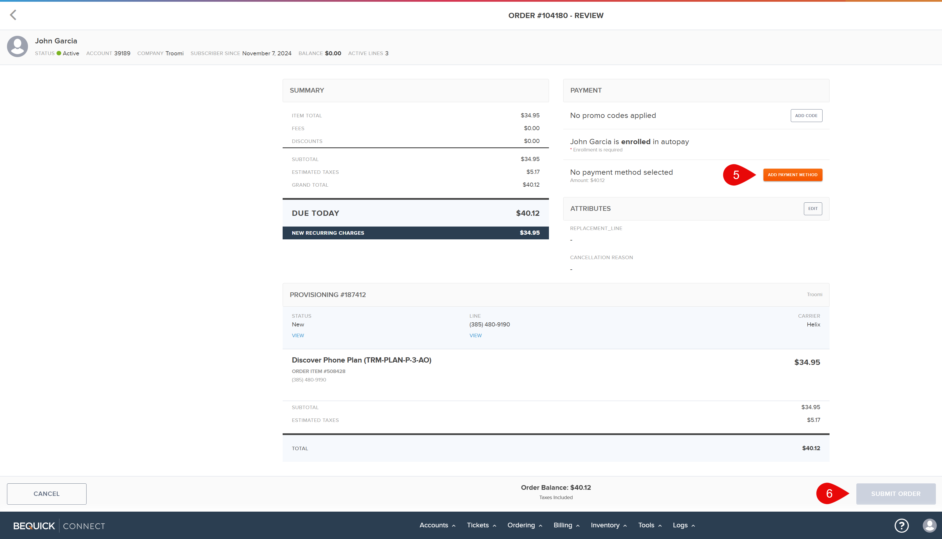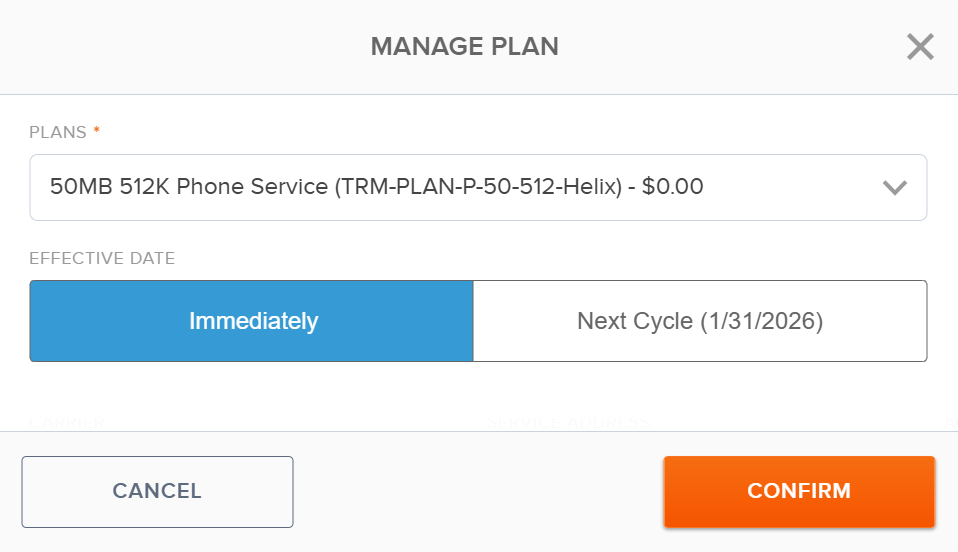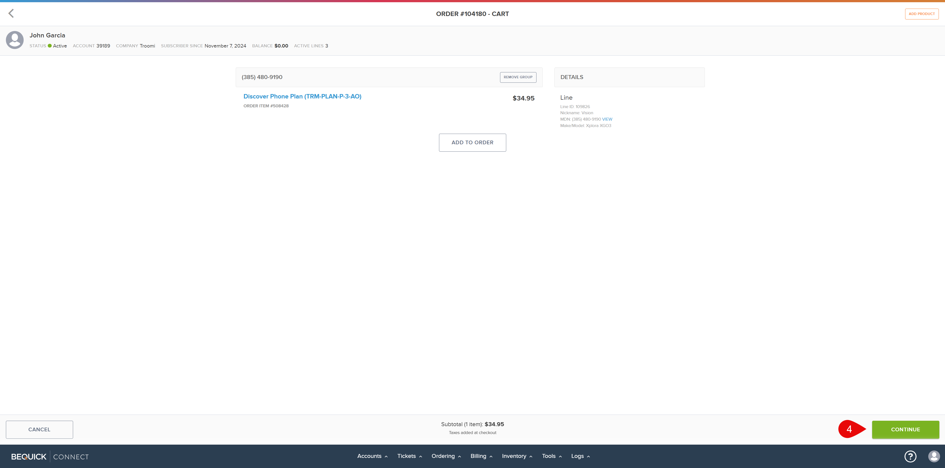 For this section, you will need to verify with the customer the charge for the desired phone plan and confirm the card information on file before ordering the plan through Connect.