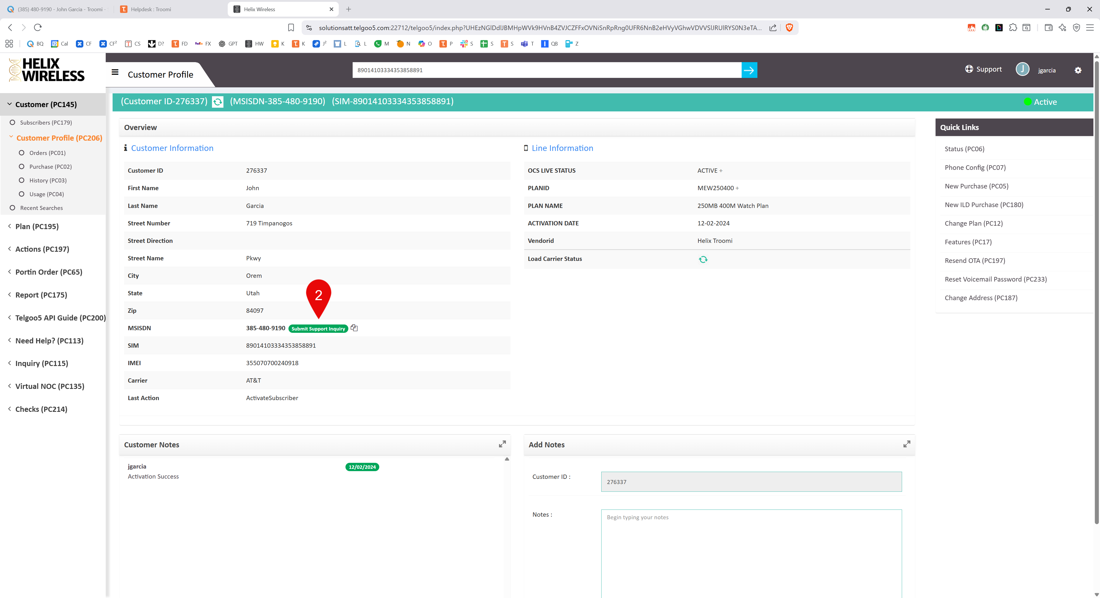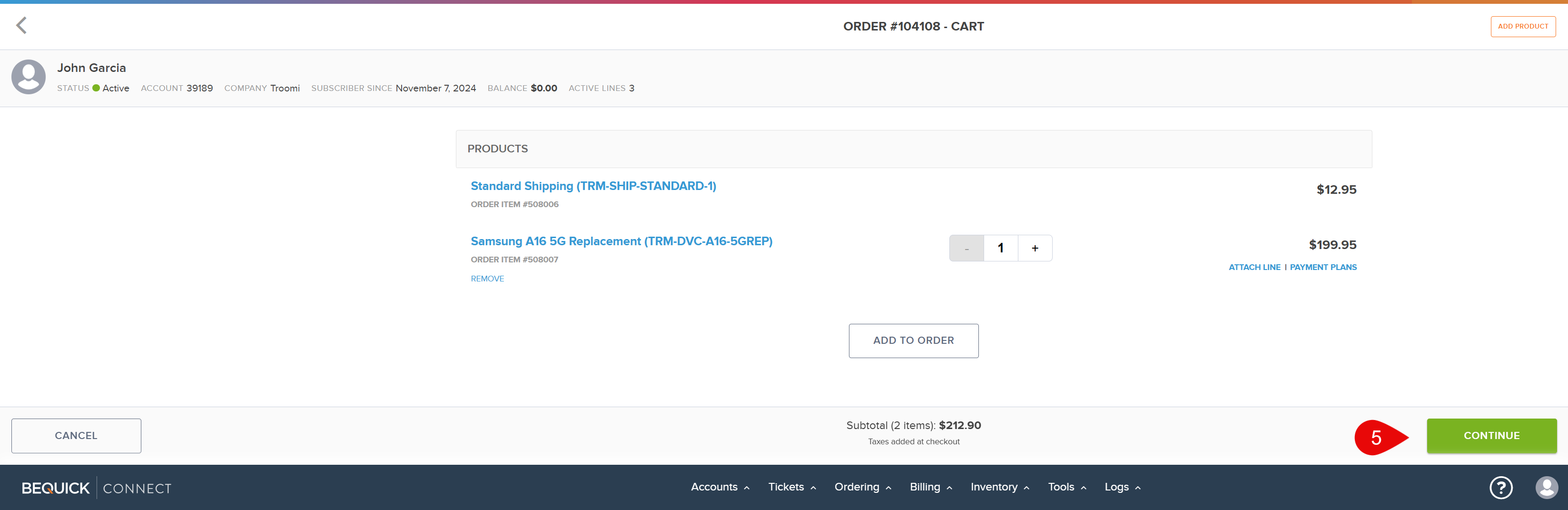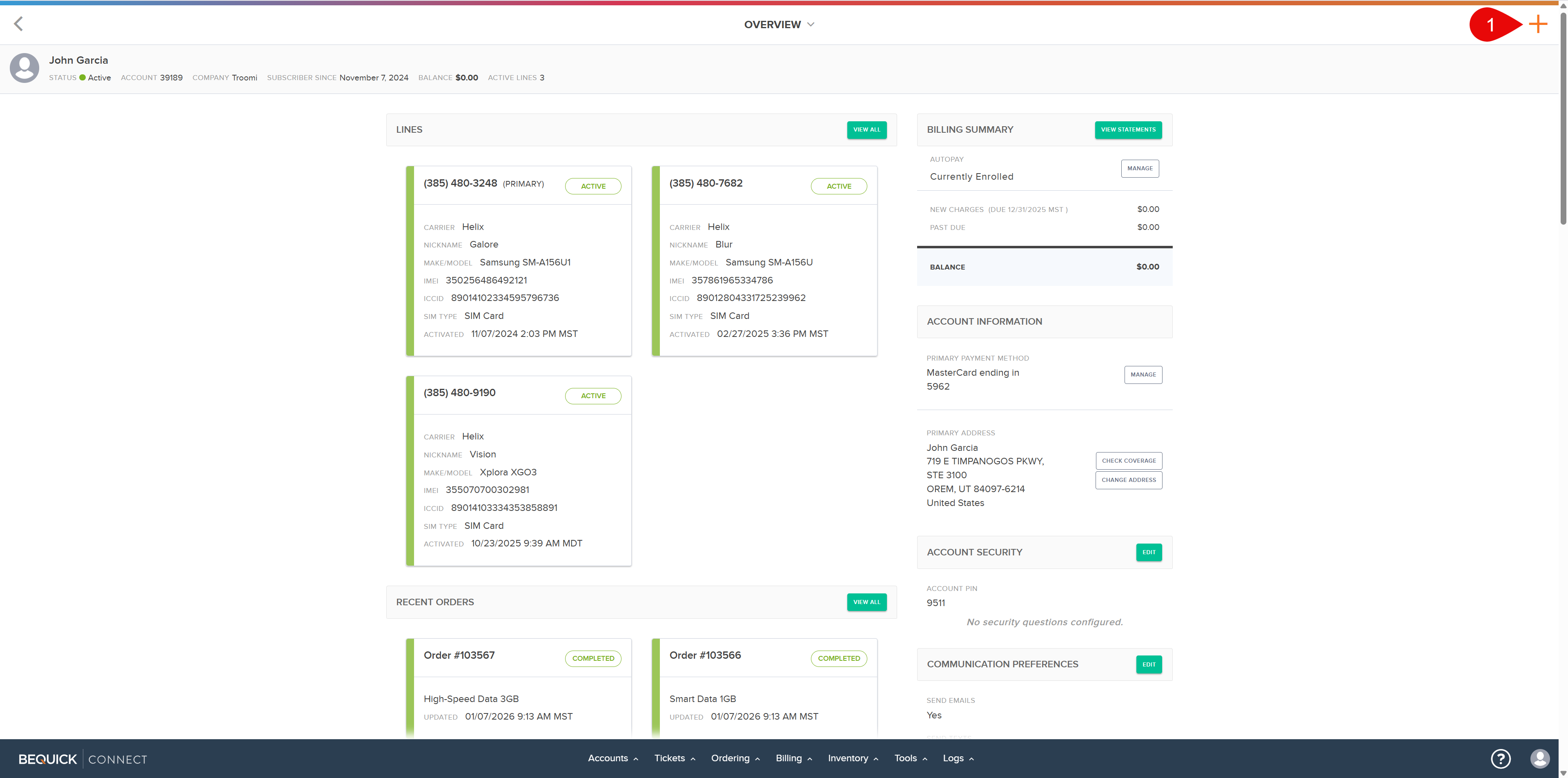 For this section, you will need to verify with the customer the charge for the desired phone plan and confirm the card information on file before ordering the plan through Connect.