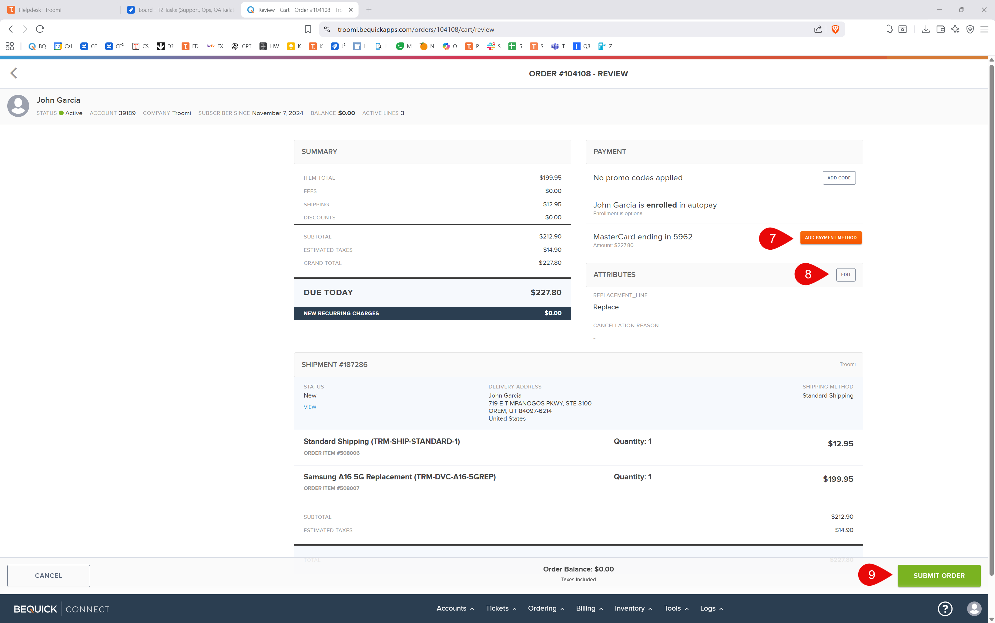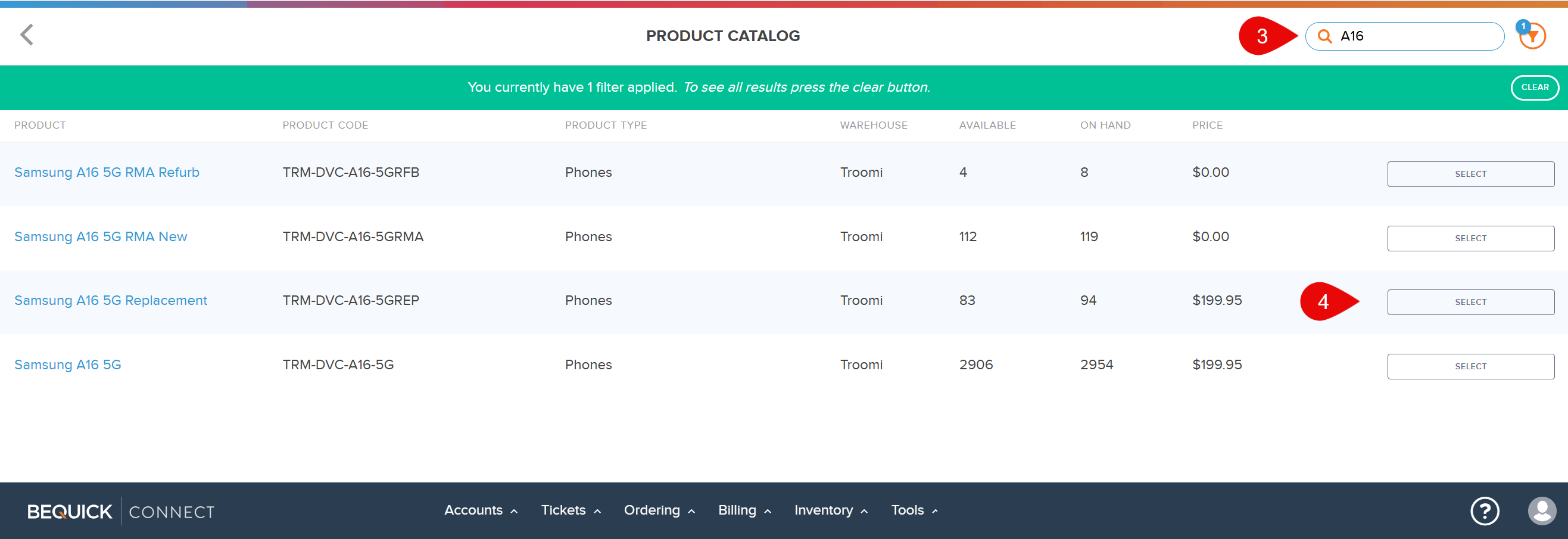 Start by going into the customer’s account in Connect and create an order for a new A16 replacement.