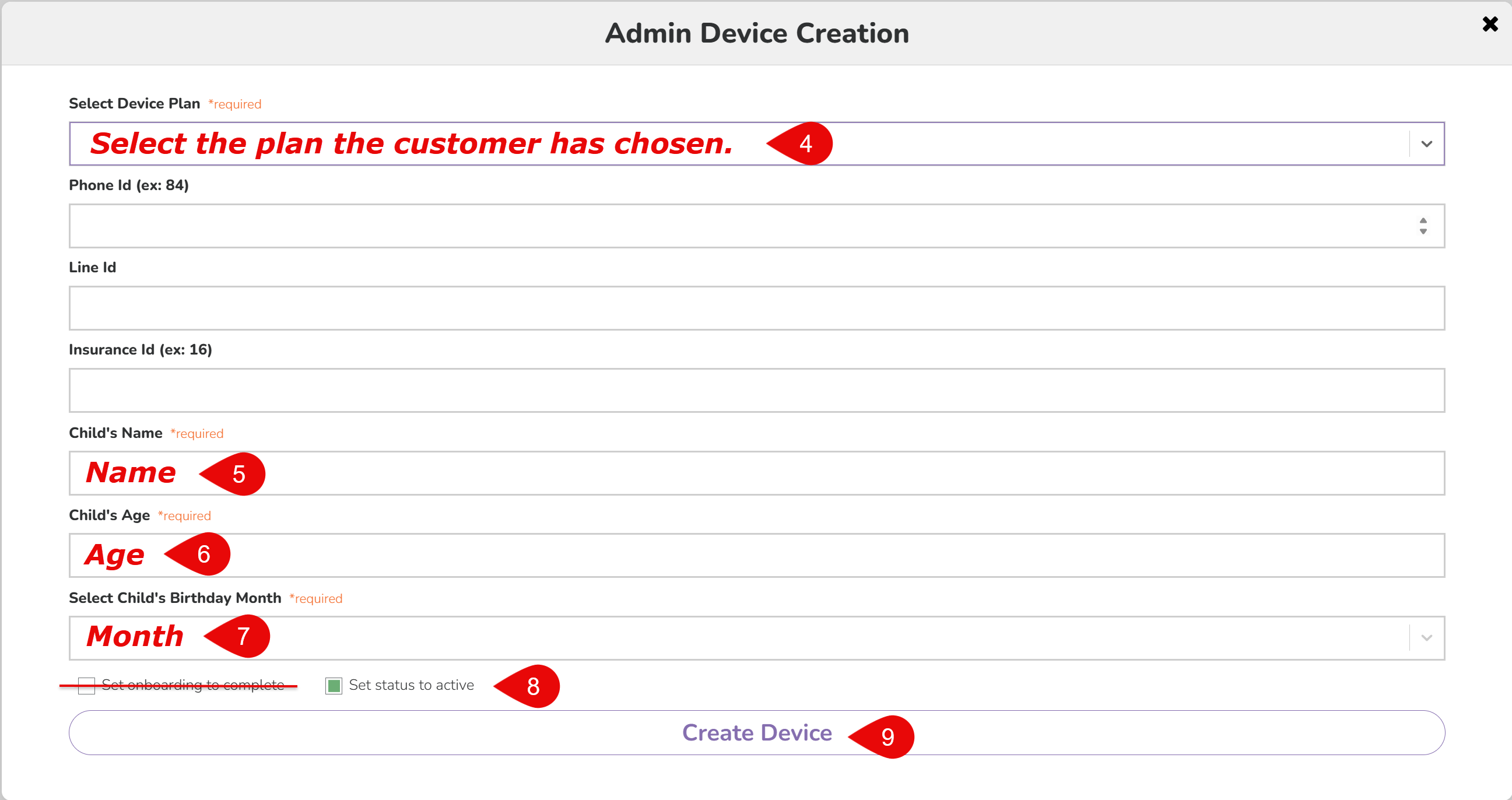Once the request has been completed by HPP, go to the customer’s parent portal and create a device. Make sure to ask the customer beforehand which plan they want and if they would like warranty coverage (highly recommended).